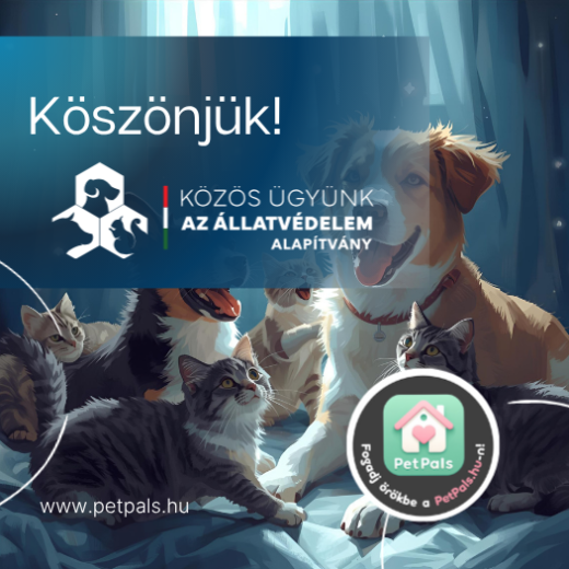 A PetPals – Az állati társkereső Egyesület 1 500 000 Ft összegű pénzügyi támogatásban részesült a Közös ügyünk az állatvédelem Alapítványtól.