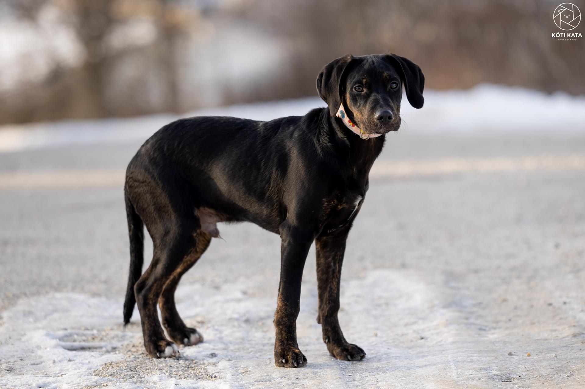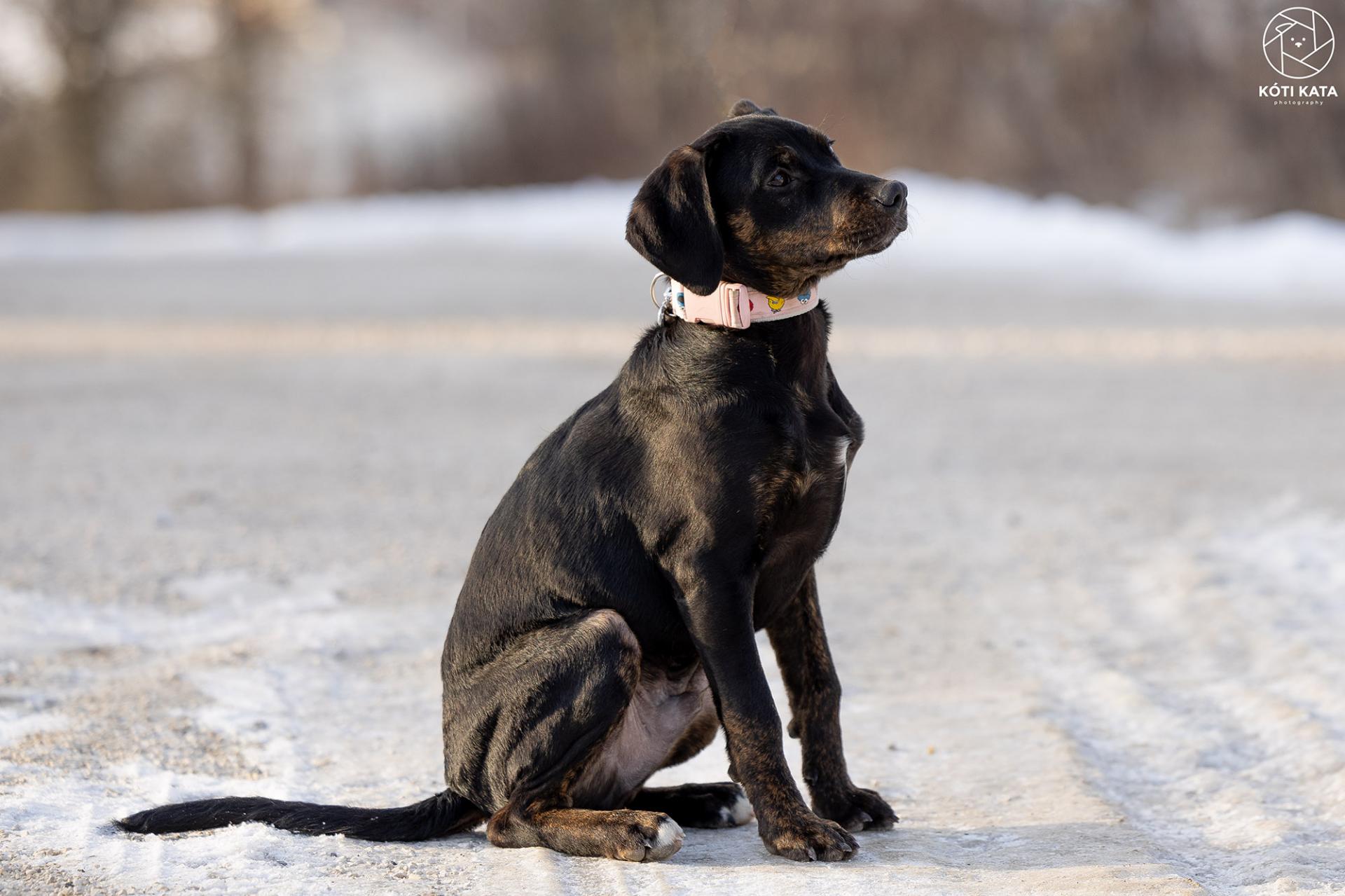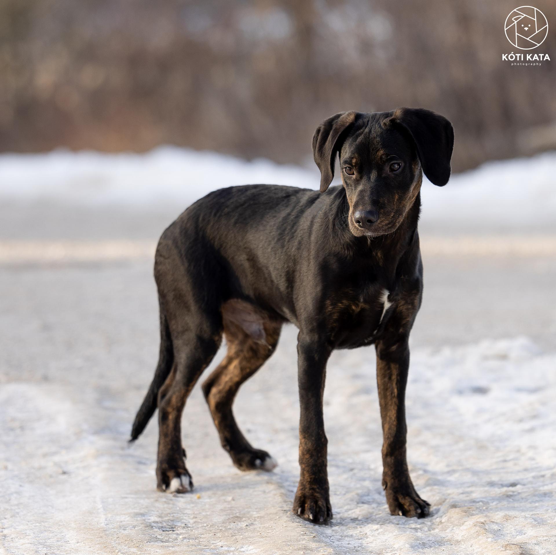 Várhatóan nagyobb középméretű lesz. Aktív, játékos, a többi kutyával is jól kijön, mindenkivel imád játszani, elég ugribugri.