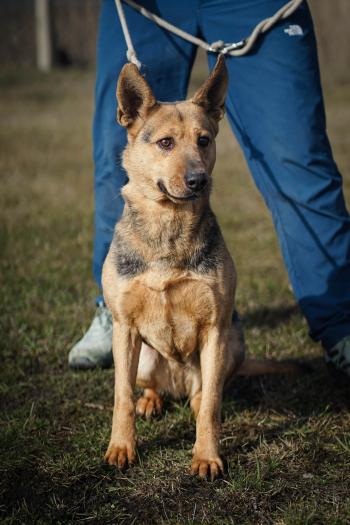 3 év körüli, közepes termetű szuka. Bekerüléskor bizalmatlan volt