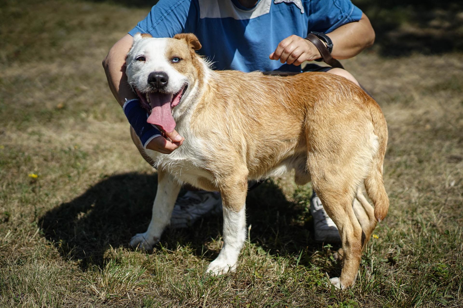 4 év körüli, közepes testalkatú barátságos kan. Pórázon sétát