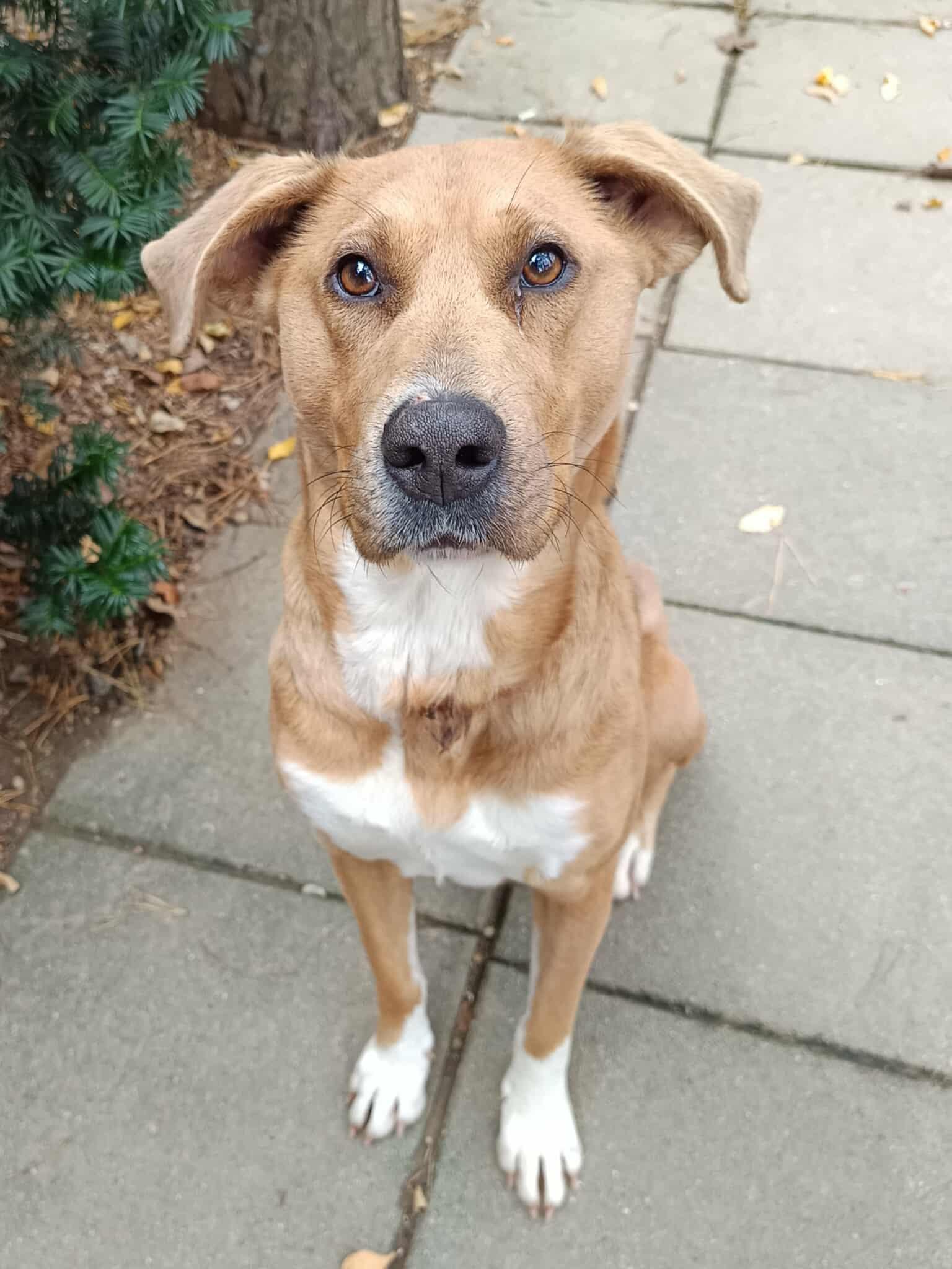 2023-as születésű nagytestű keverék szuka kutya. Nagyon rossz körülmények között élt, láncon tartották. Ennek ellenére emberekkel nagyon barátságos. Kan kutyákkal összeszoktatható. Cicákkal való kapcsolata nem ismert. Játékos, intelligens, kedves, aktív kutya, szívesen tanul. Pórázon szépen sétál, szobatiszta, nem rombol.