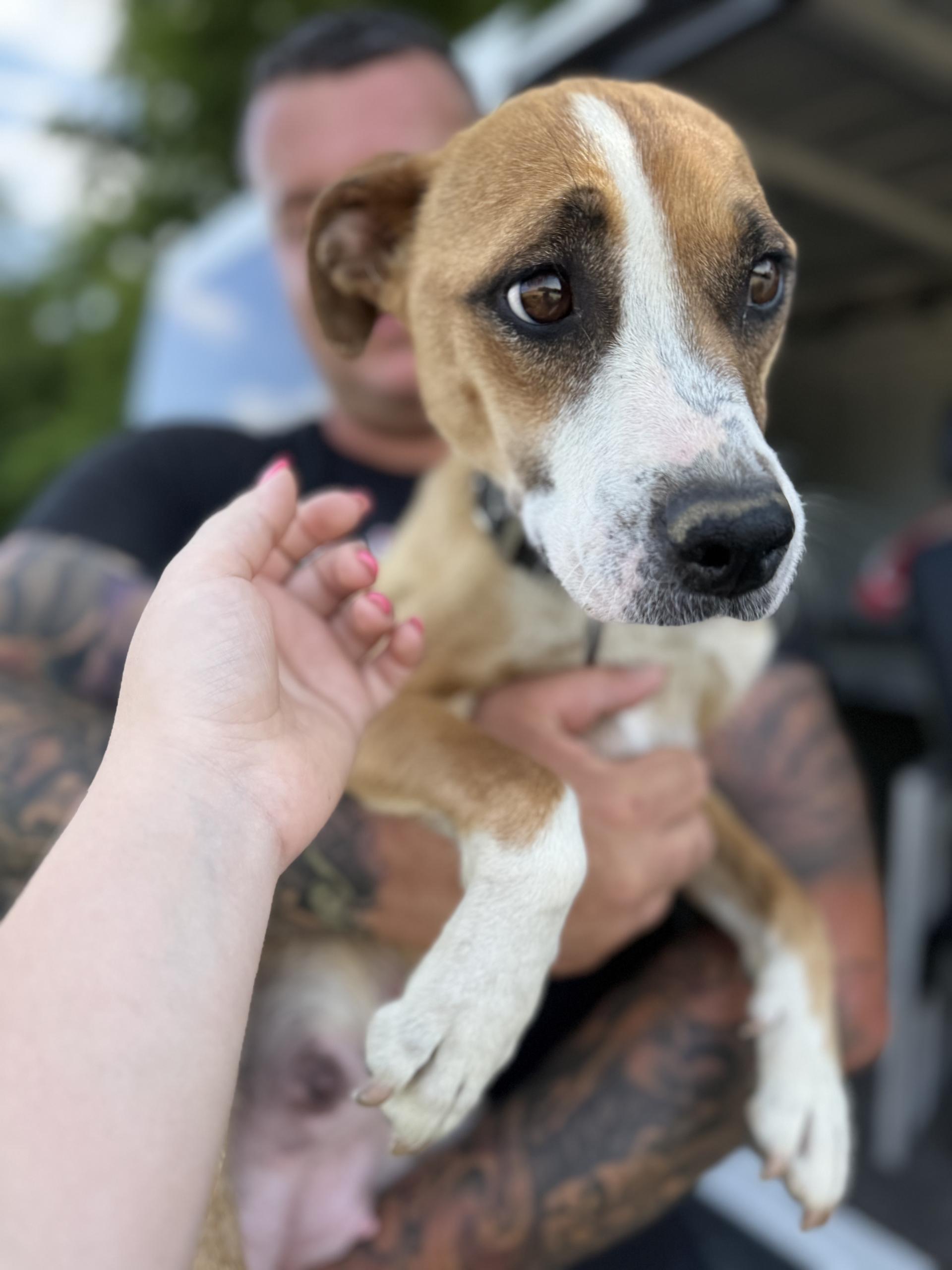 Mentésekor sovány, kiszáradt állapotban volt, de a szemeiben még ott ragyogott az az ártatlan remény, ami ma is az egész lényét beragyogja.Most már biztonságban van nálunk. Szépen hízik, erősödik, és minden nap egy kicsit visszatér belé az élet… és a bizalom.