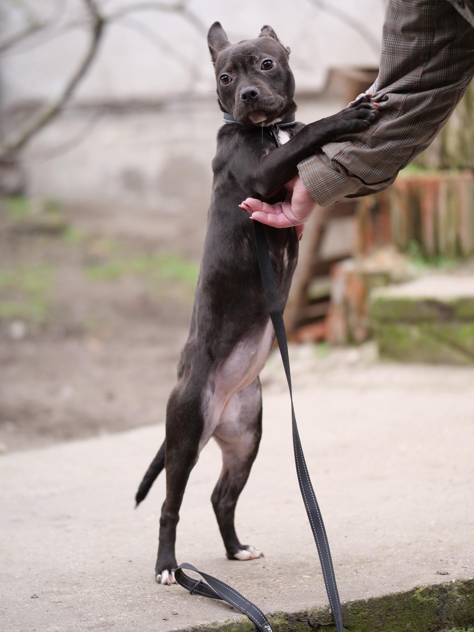 Csillag egyszerűen tökéletes. Mindenkit imád, agyon puszilgat, ezerrel megy a farkincacsóva. Egy mini tankocska, aki megy, töri az utat, csak hogy a kegyeidbe férkőzzön, mégse jelentkezik érte senki... Kisebb staffy keverék kislány, égbe meredő, puha fülecskékkel, ha fáradt, akkor meg olyan elégedett és úgy mosolyog, imádja ha foglalkoznak vele. Hamarosan fél éves lesz és sok mindenen ment keresztül, egy igazi kölyökkutya, aki felépült betegségeiből és most ismerkedne a világgal, de sajnos egyelőre nincs kivel megtegye ezt. Csillag imád játszani, bújni is, okos és igyekszik a kedvedre tenni. Nem ugatós, megszokta már sajnos az egyedüllétet, így mindenkit kitörő örömmel fogad, nagyon szeretne már egy családot.
