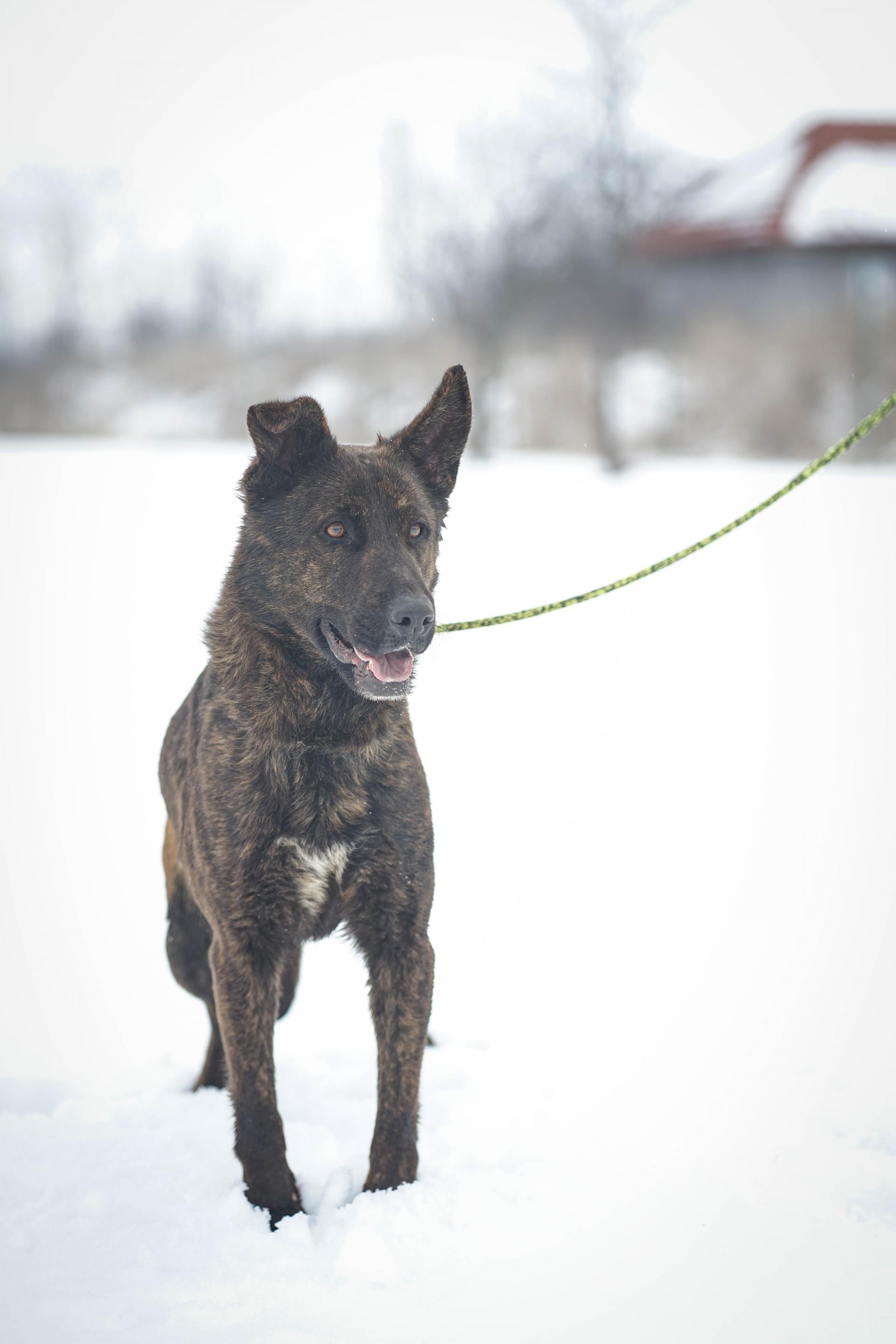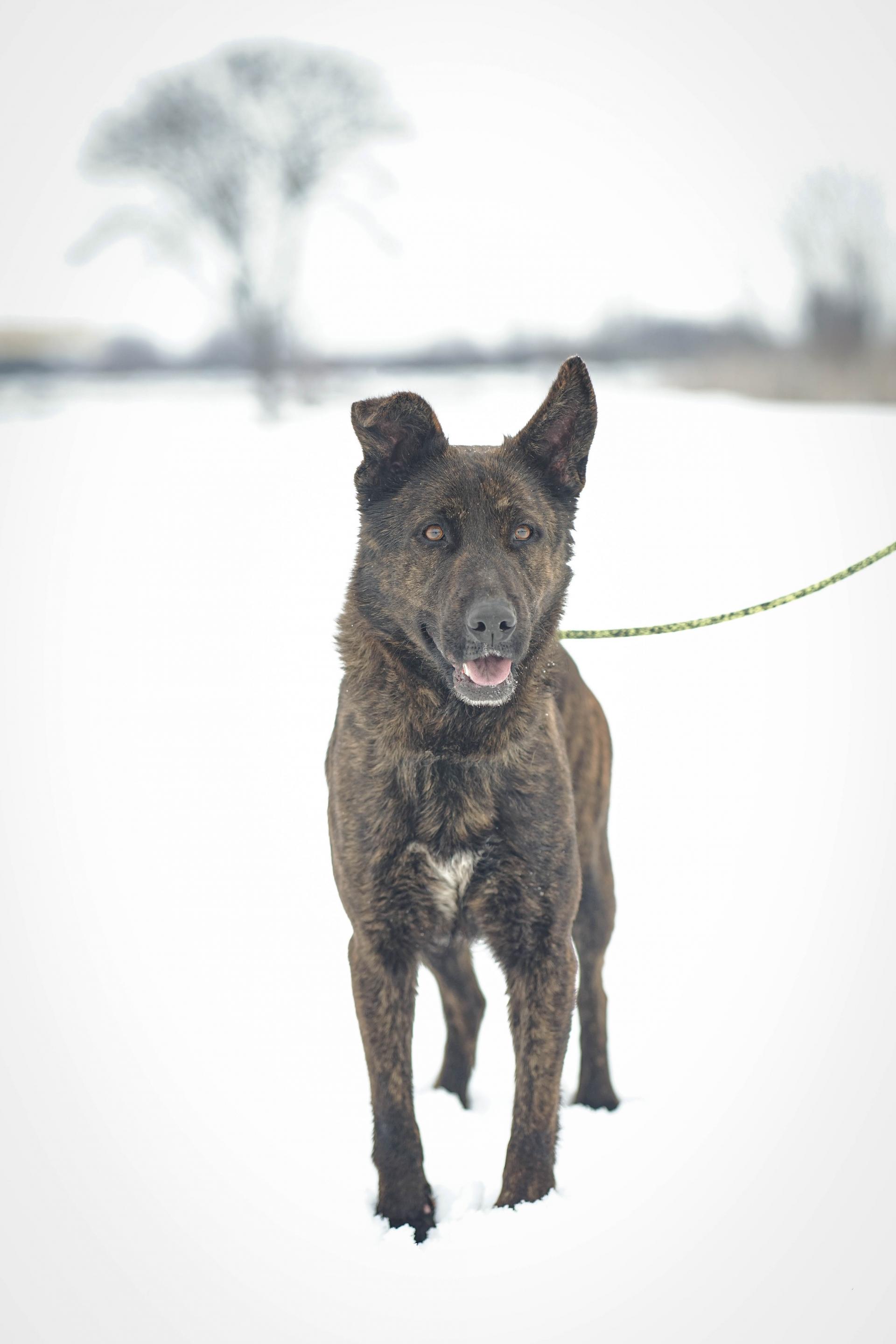 1 év körüli, barátságos és aktív szuka, aki némi holland juhász