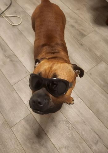 Erős testalkatú, de könnyen kezelhető, és nagyon barátságos. Tanulékony, de foglalkozást igényel, mert korábbi „gazdája” mellett csak nőtt, mint a gomba.