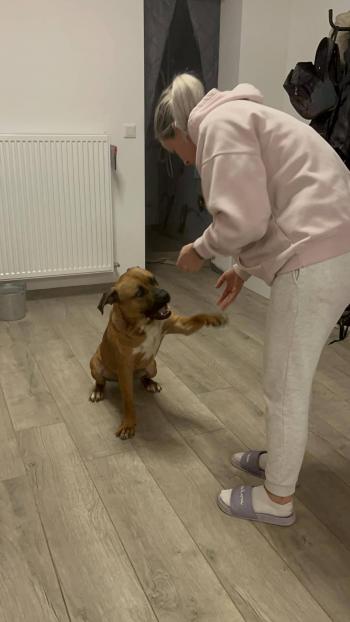 Bobi 2025. nyár vége felé került be a telepre, mert akkori „gazdája” szó szerint szélnek eresztette Őt. Érthetetlen, hiszen Bobi egy fantasztikus, fiatal, jó eszű, csupa mosoly kutyus.
