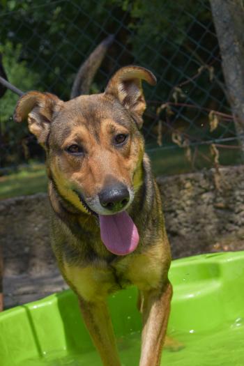 rajzos pofijú, jó kiállítású kedves legényke. Nyílt naponkon gyönyörűen sétál, nagyon érdeklődő, figyelmes. Rendkívül okos, jól tanítható, szívesen működik együtt sétáltatójával. Hihetetlen gyorsasággal sajátította el az "ül" vezényszót is. Annyira vágyik az ember közelségére, a rá irányuló figyelemre. A pancsolást is megkedvelte, és örömmel lubickol, ha végre szabadon mozoghat.