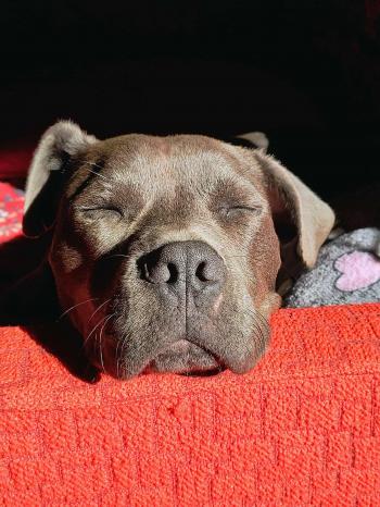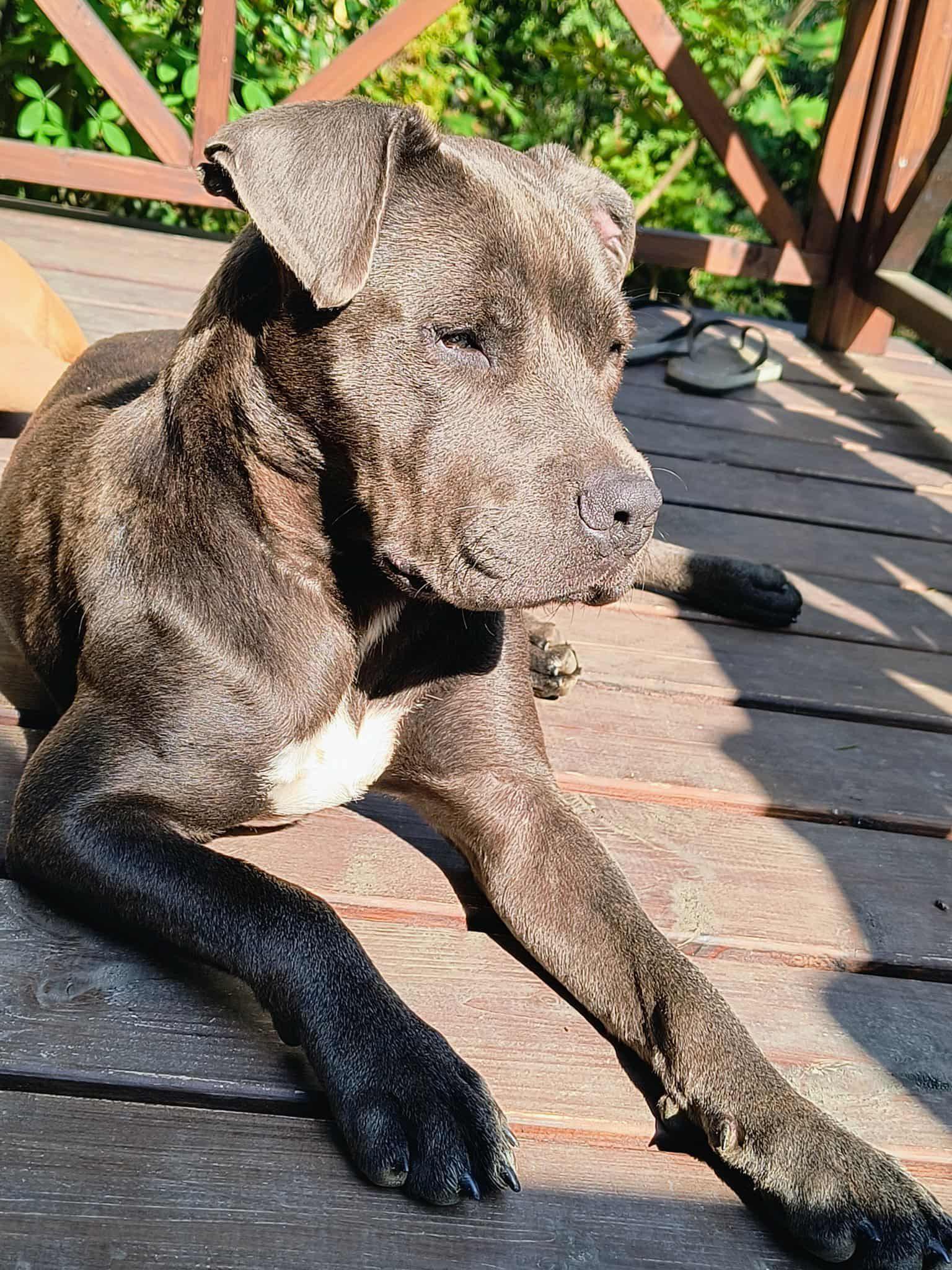 Lara vagyok. A mostani gazdim szerint mini amstaff, ugyanis már 3 hónapja semmit nem nőttem. Egy év körüli lehetek. A gazdim nagyon szeret, de nem jövök ki az ő nagy kutyájával. Így hát most 4 hónap után újra gazdi kereső lettem. Amit tudni lehet rólam:
