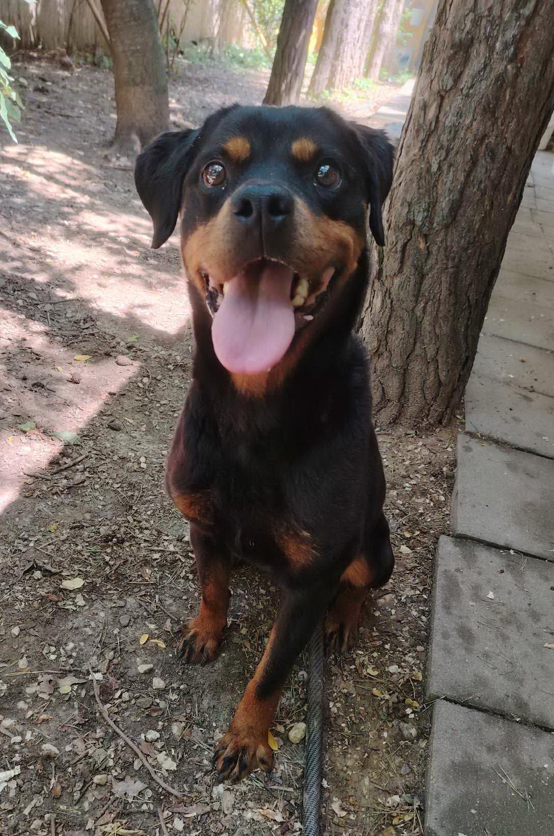 2018as születésű rottweiler jellegű szuka kutya. Emberekkel barátságos, kan kutyákkal összeszoktatható, cicákkal való kapcsolata nem ismert. Határozottabb gazdit igényel, kutyaiskola javasolt. Pórázon szépen sétál, nem rombol, szobatiszta.