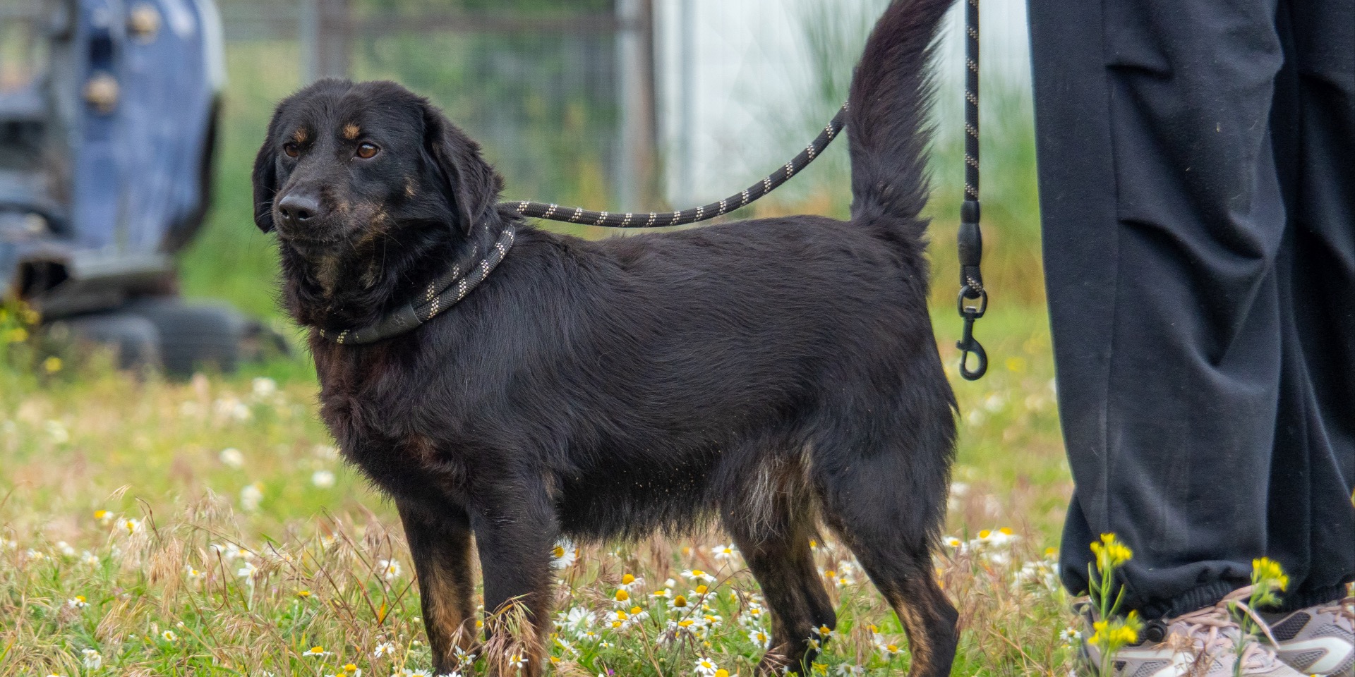 Marci nyakán a nyomok talán örökre mesélnek majd a múltról, de a lelke már a jövőre tekint. Ez a 2023-as születésű, gyönyörű fekete, közepes termetű kan borzalmas körülmények közül menekült meg. Egy madzaggal kikötve élt, ami húsig vágott a nyakába, fájdalmat és szenvedést okozva neki.