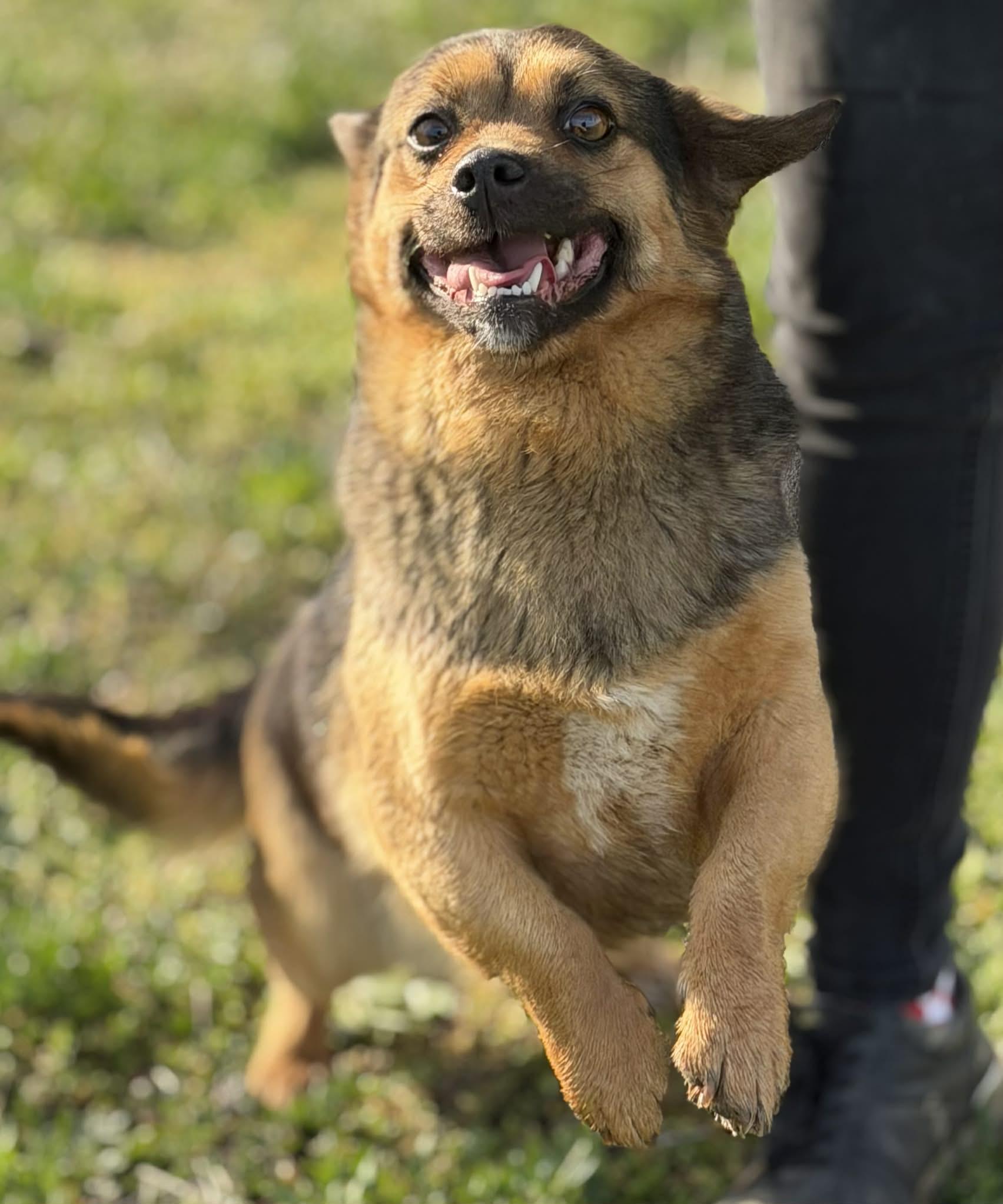Kb. 1,5 év körüli kislány kutyus, aki imádja az embereket, kifejezetten szereti a gyerekeket és láthatóan nagyon vágyik a szeretetre. Ráadásul a kamera is rajong érte, igazi kis mókamester, aki minden fotón mosolyt csal az ember arcára. Kóbor kutyaként érkezett hozzánk, mára már a sétáltatóink egyik kedvence. Más kutyákkal szoktatható, macskákkal viszonya nem ismert.