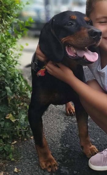 Imádom az embereket, igazi bújós szeretetbomba vagyok. Más kutyákkal is jól kijövök, szeretek haverkodni. Chipem, oltásaim megvannak, kölcsönös szimpátia esetén azonnal tudnék is költözni.
