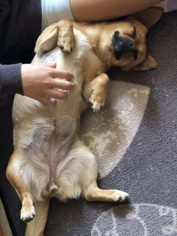 Jelenleg kinti–benti kutyaként él ideiglenes befogadójánál, de sajnos időről időre bejut a csirkeólba, így hosszú távon nem tud maradni.