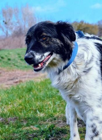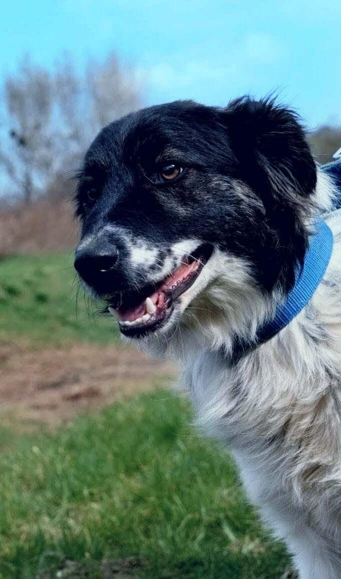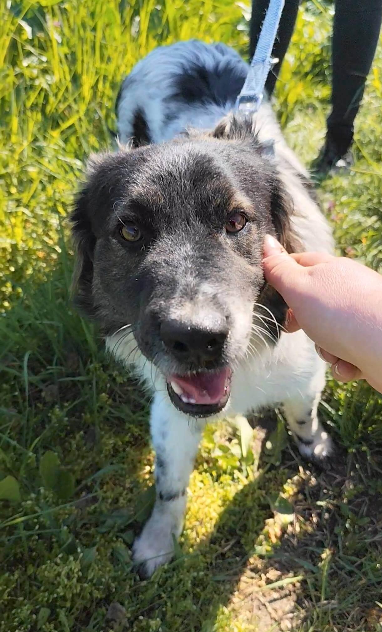 Hihetetlenül szépséges, különleges megjelenésű, erősen border collie jegyeket hordozó legényke. Bundája olyan mintázatú, amit csak rajzfilmekben láthatunk.