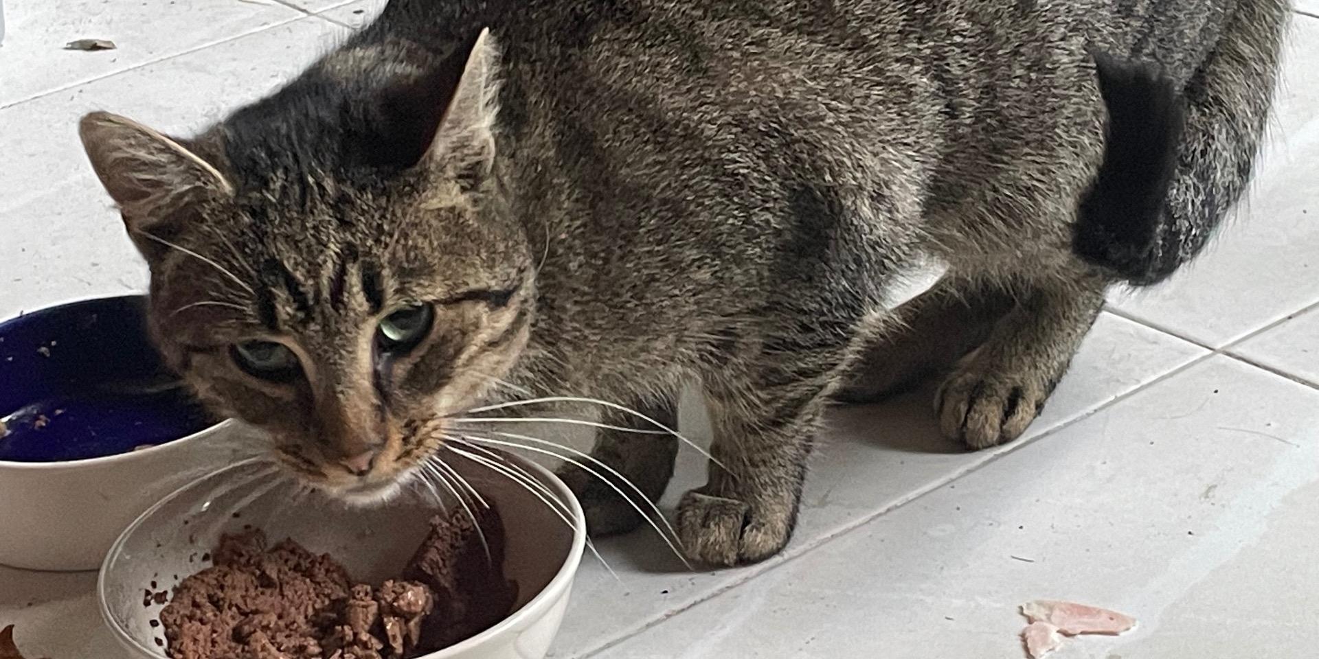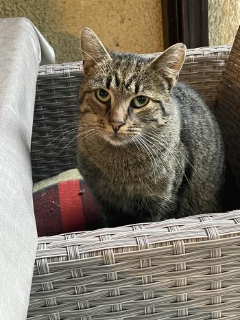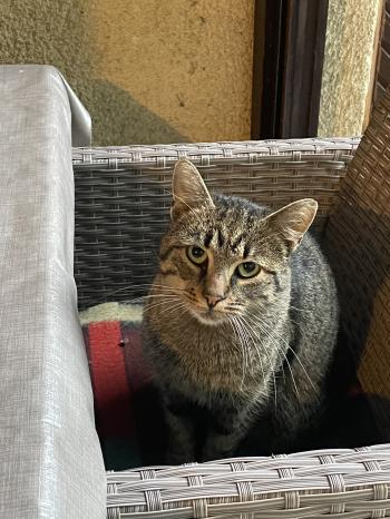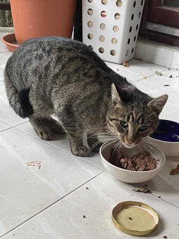 Egyszercsak megjelent ez a cica, kétségbeesett nyávogással, nagyon éhesen. Éhségénél azonban félelme még nagyobb volt, nem ment oda azonnal az ételhez, nagyon tartott az emberektől. Már sokat szelídült, szereti, ha simogatják, dorombol. Kis törődéssel egy nagyon bújós, ragaszkodó cica válna belőle. Már hisz benne, hogy az emberektől nem csak bántást kaphat, hanem egy boldogsággal teli életet és minden nap teli pocakot :-).