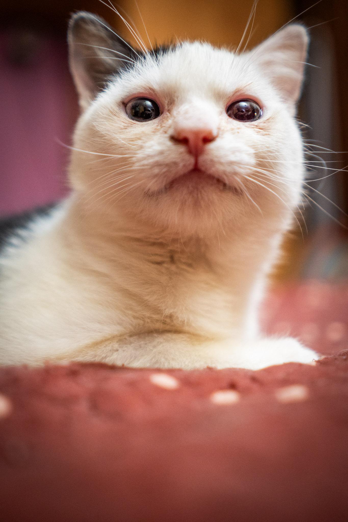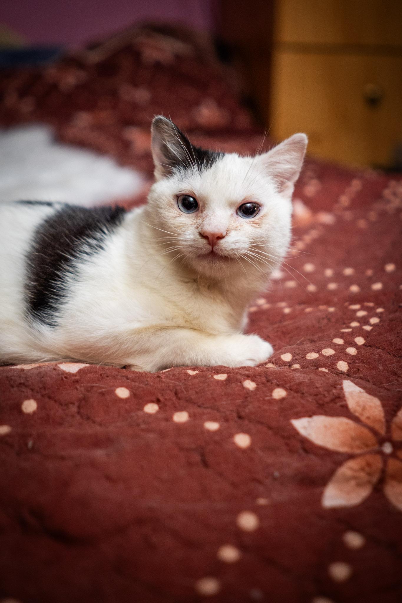 Benjamin egy jelentősen fejlődésben visszamaradt kisnövésű cica, aki a felnőttkort elérve sem éri el a 3 kilót :)