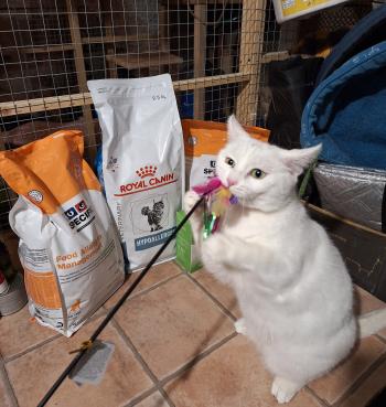 A tollasbotért megőrül, órákon keresztül képes a tollakat nyalogatni. Nagyon embercentrikus, viszont más macskával nem igazán jön ki. Olyan gazdit szeretnénk neki, aki lakásban tartja, biztosit neki a kanapén egy sarkot, szeret beszélgetésekben részt venni, gyanis a fülének semmi baja jól hall, csak szelektíven.