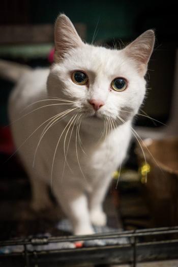 Bianka súlyos nyaksérüléssel került a gondozásunkba, miután egy állatbarát sérülten bevitte a rendelőbe. Hónapokba telt, mire elértük a teljes gyógyulást. A sérüléseket saját magának okozta, allergiás,ezért hipoallergén tápot eszik. Mára egy gyönyörű nagy jegesmaci lett belőle,aki nem szereti a fajtatársait, ezért önkéntesen vonult az egyszemélyes apartmanjába.