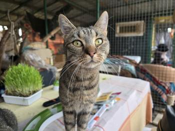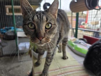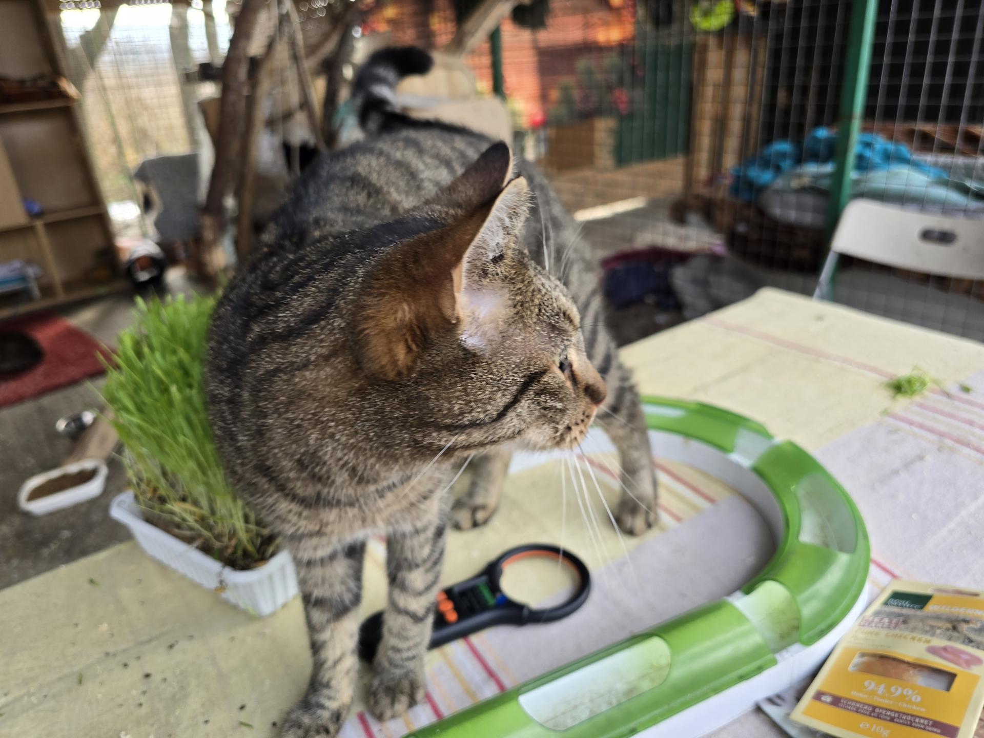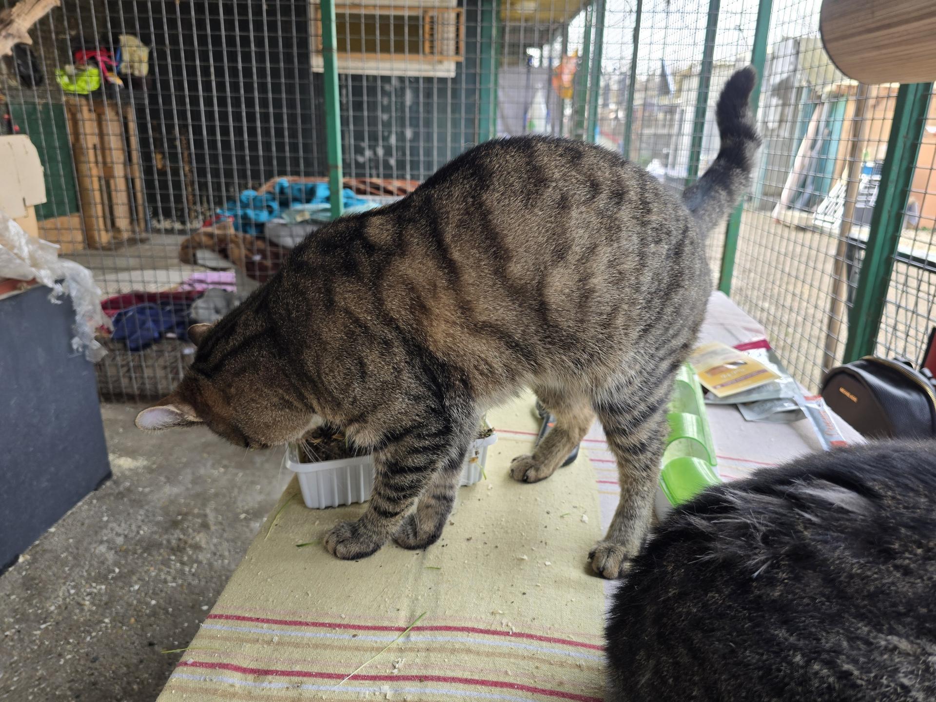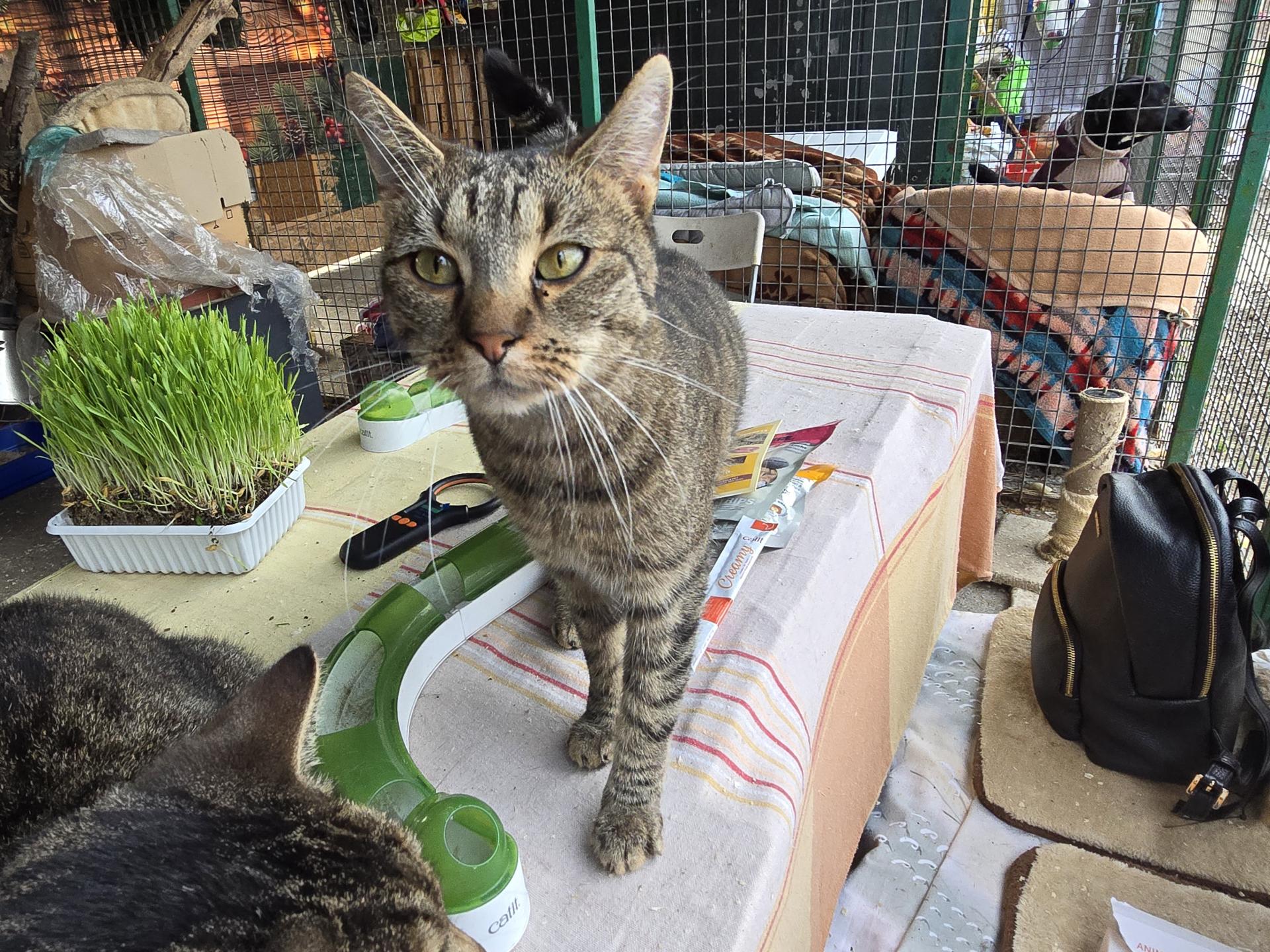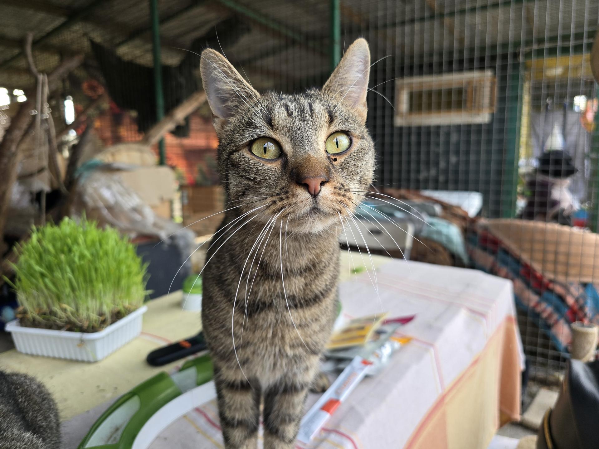 Mamájával és testvérével együtt került a menhelyre. Kedves, barátságos, és kíváncsi és nagyon tapadós cica. Imádja az embereket, cicákat. Mindig dörgölőzik, bújik, vágyik a szeretetre!