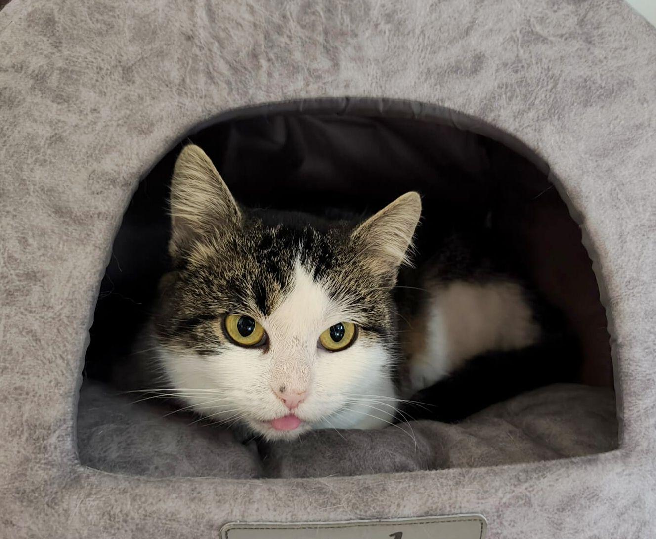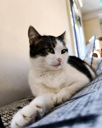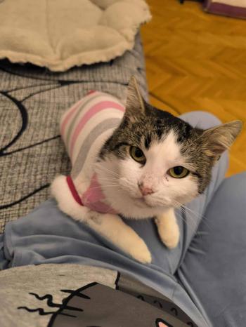Szegényke nagyon nehezen is ébredt a műtét után, de most már jól van. Minden nehézség után is tele van szeretettel, bizalommal és dorombolással. Idimamija szavaival szeretnénk bemutatni jellemét: