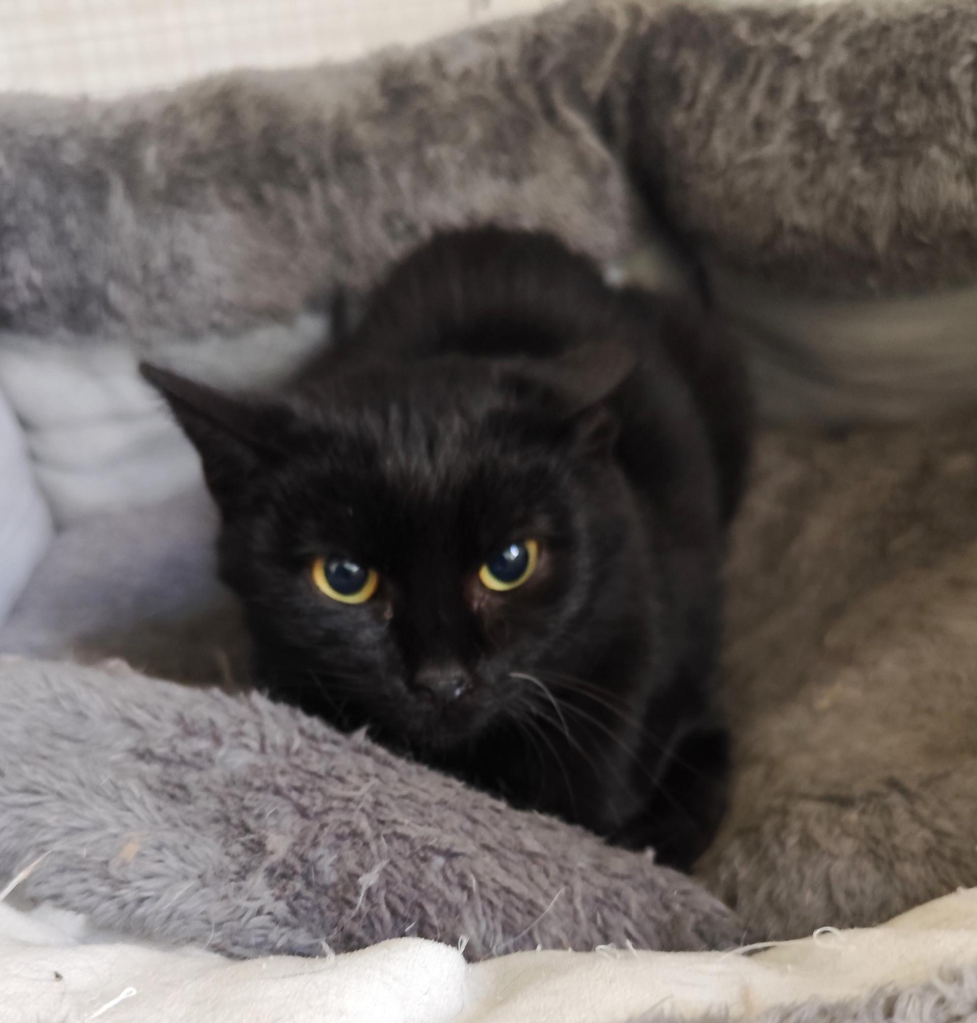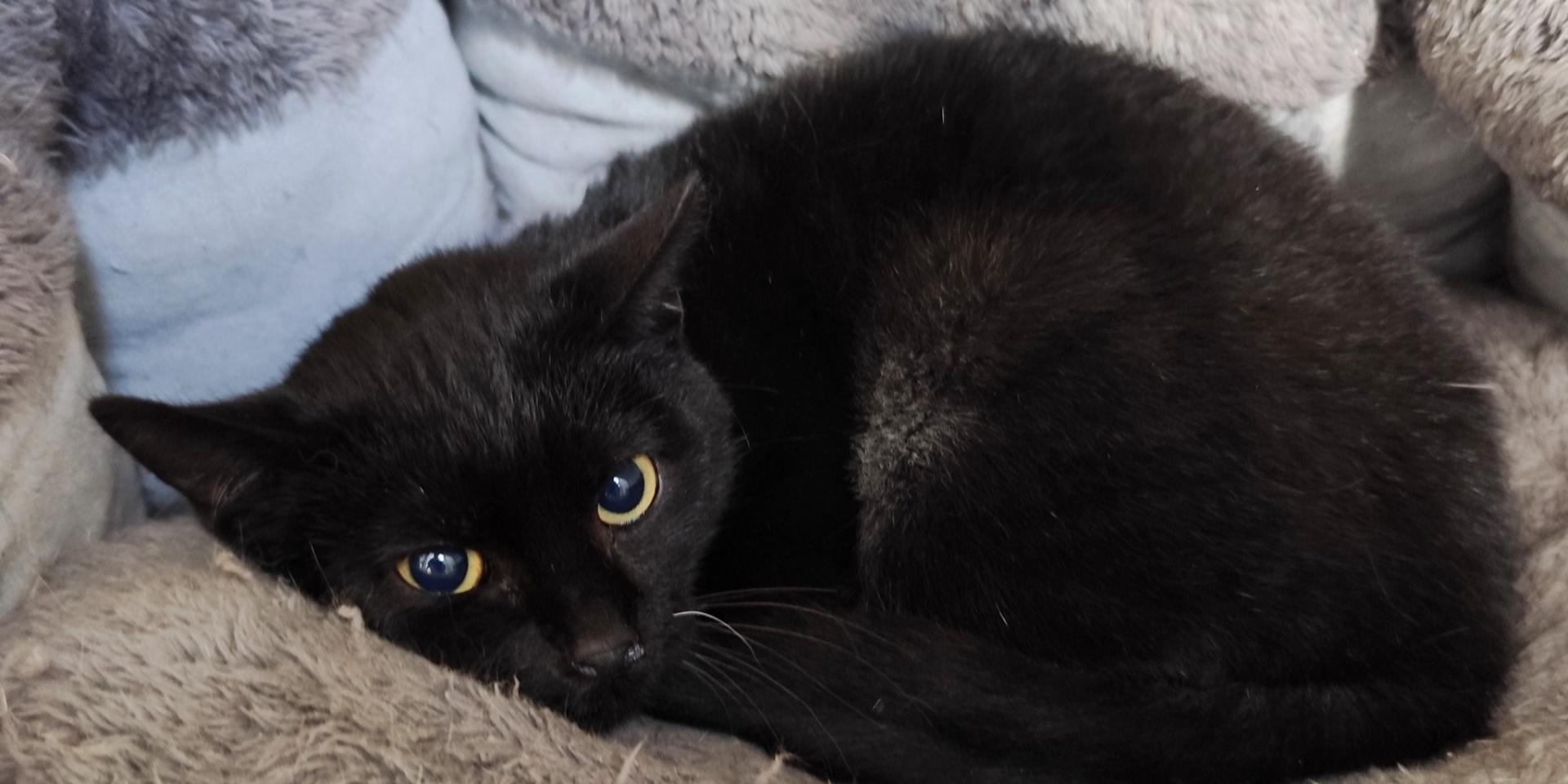 gyönyörű ébenfekete kandúr, aki lassan 2 hónapja él a miskolci