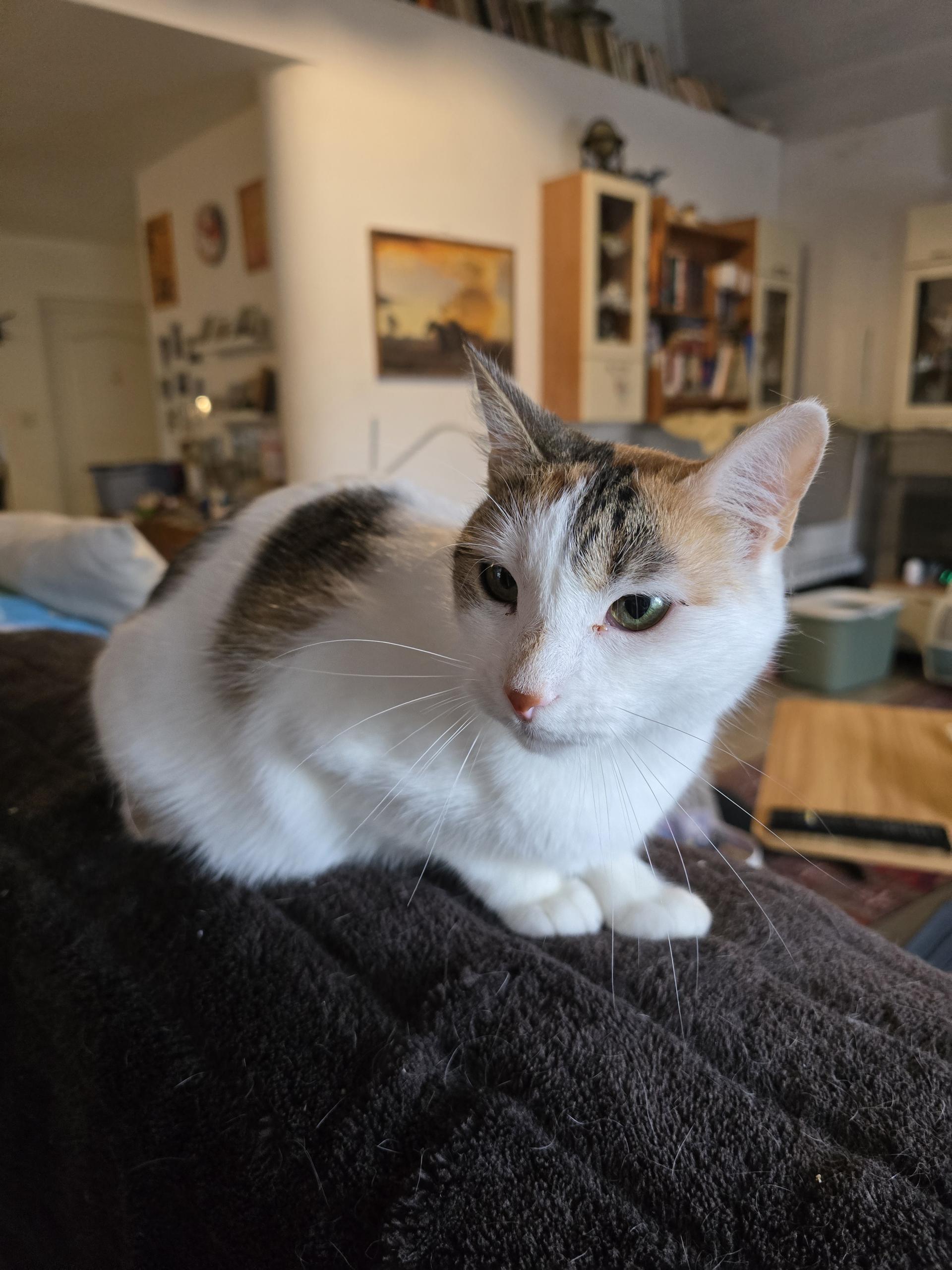 Lara, Tigris testvére, egy gyönyörű trikolor nőstény cica, ivartalanítva és teljesen egészséges. Parazitamentes, kétszer oltott, negatív FELV/FIV teszttel rendelkezik, és tökéletesen szobatiszta. Lara már 2 éve él lakásban és családban.