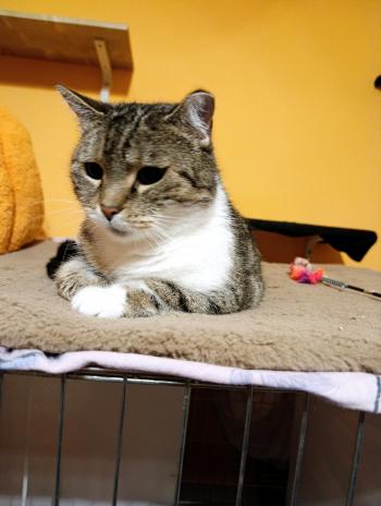 Lotti mama felnevelt öt kölyköt, amiből csak kettő volt saját. Ivartalanítva lett, de nem simogatható. Kb 5-6 éves lehet, és eddig kinn élt, szóval valószínűleg ügyes egerésző. Nem támad, kézből eszik, de simogatni nem lehet. Hátha mégis talál magának egy gazdit. Valójában nem akar kimenni, jól elvan a lakásban is. Más macskákkal jól kijön.