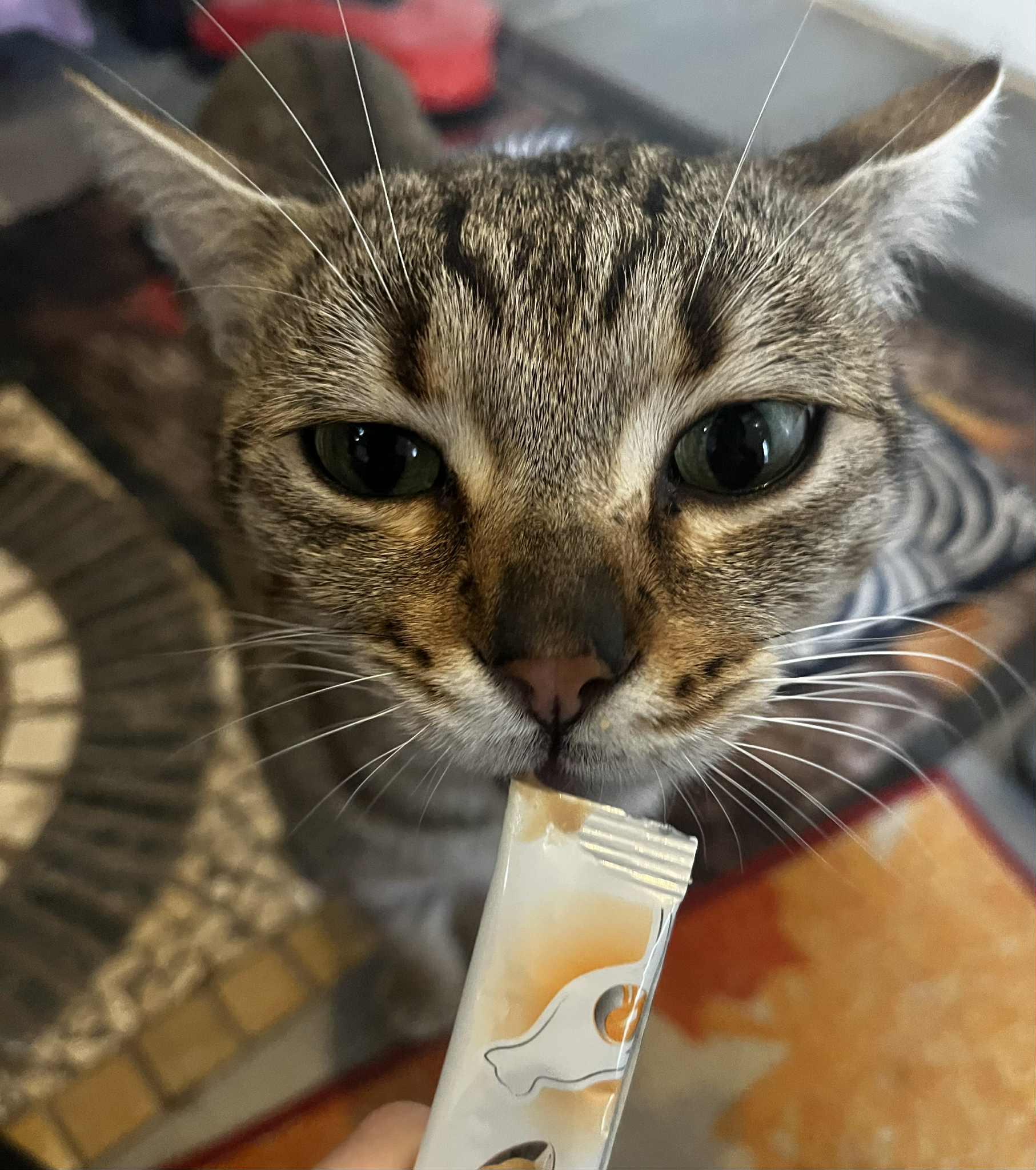 Miló története különleges törődést igényel: sajnos korábban a stressz miatt Struvitos lett, és romlottak a veseértékei. Jelenleg tünetmentes, de állapotának fenntartásához folyamatosan szüksége van a Struvit kő oldó pasztára és speciális tápra.