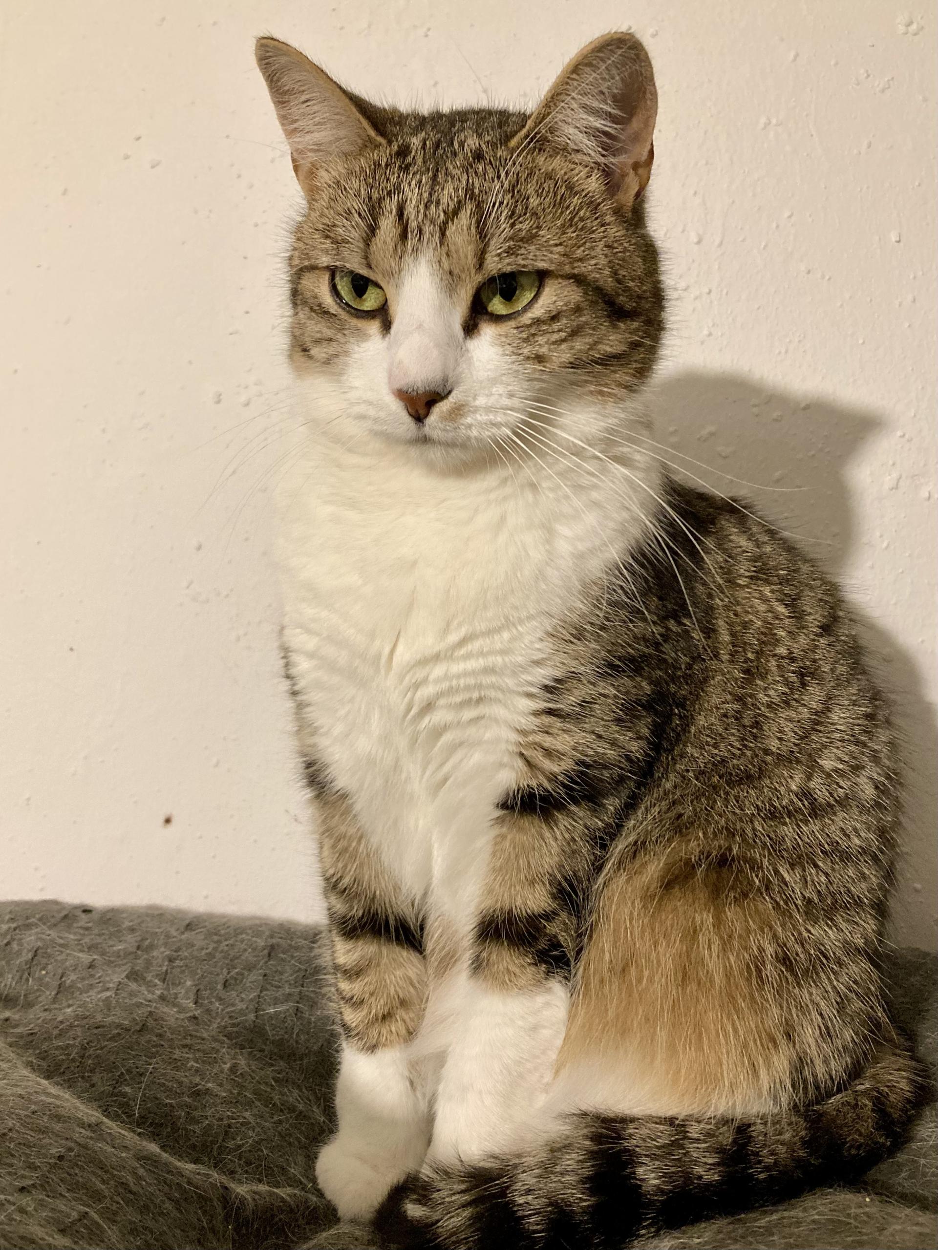 | Színe | szürke cirmos-fehér |