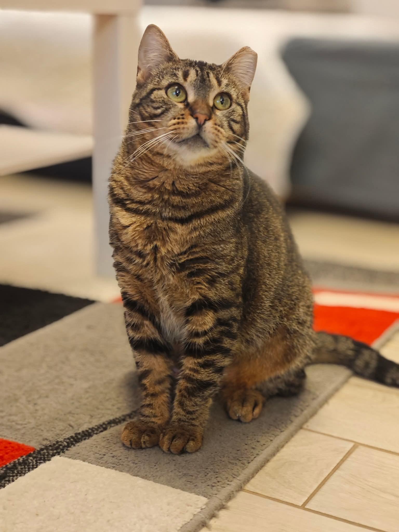 | Természete | kedves, szeret labdázni, más cicákkal jól kijön, imádja a pocakját |