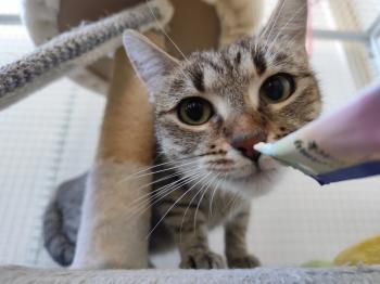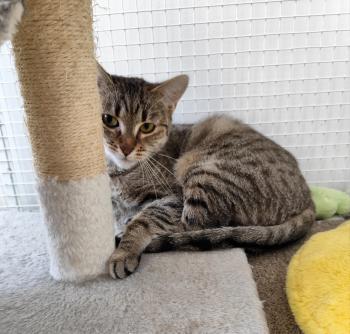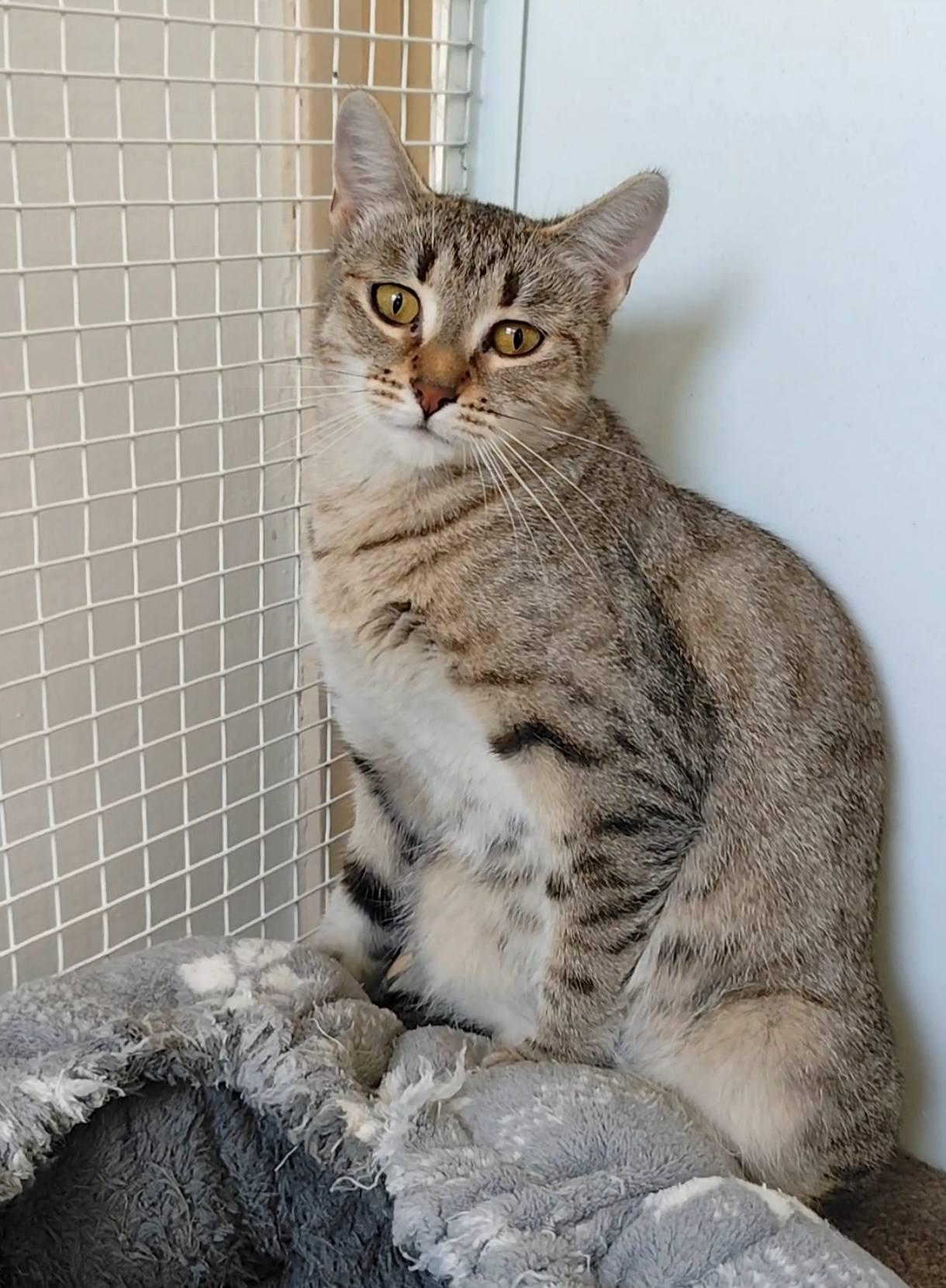 Peggie kb. 2,5 év körüli nőstény cica, aki 6 hónappal ezelőtt mamacicaként, kicsinyeivel együtt került be a miskolci gyepmesteri telepre. Példásan felnevelte kicsinyeit, csodás mami volt ez a félénk kislány. Még mindig tart az embertől, hisz nem sok kontaktja volt a kétlábúval, amíg szoptatott és gondozta kölykeit. A kicsik azóta szépen felcseperedtek, és már mindannyian gazdis cicusokká is váltak. Peggie is gazdikereső státuszba lépett. Bekerülésekor végletekig kimerült állapotban volt. Nagyon félt, egyenesen rettegett. Nem értette, mit keres a rácsok mögött....