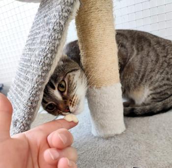 Mára sokat javult a helyzet, a kis lelke gyógyulófélben van, de még nagyon messze az út vége. Időre van szüksége, nehéz a bizalmát elnyerni, de nem lehetetlen! Egy türelmes, gondoskodó gazdi mellett hamar magára találna, és megtapasztalhatná, milyen egy boldog, gazdis cica élete, ha szerető családi környezetben élhet!