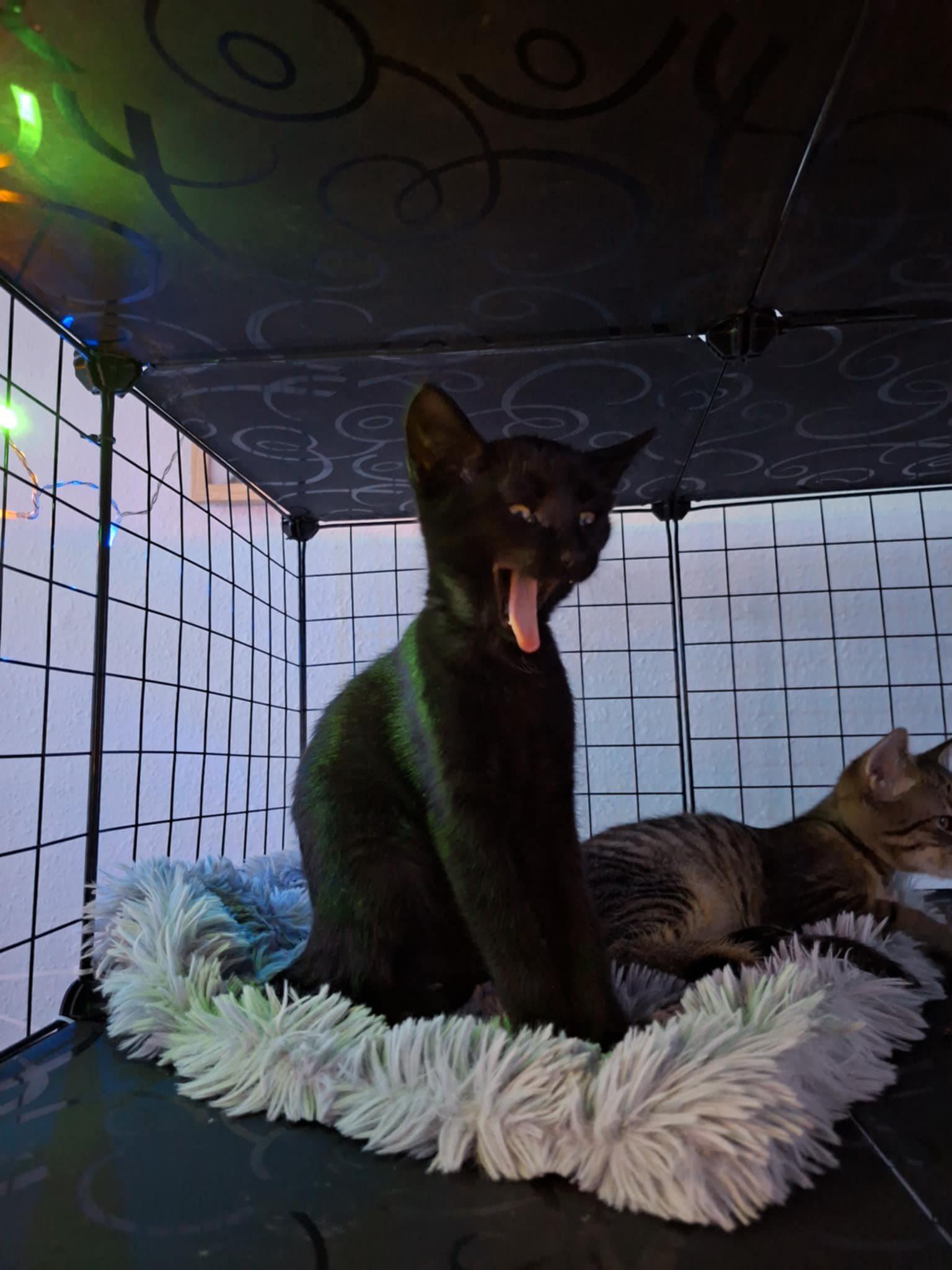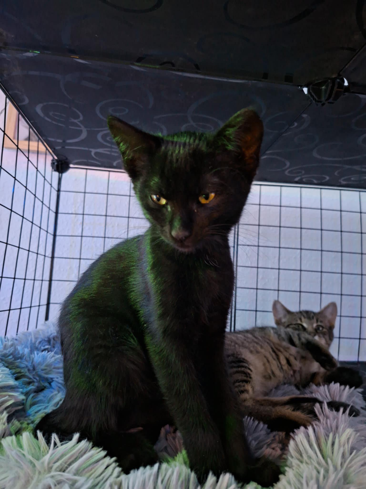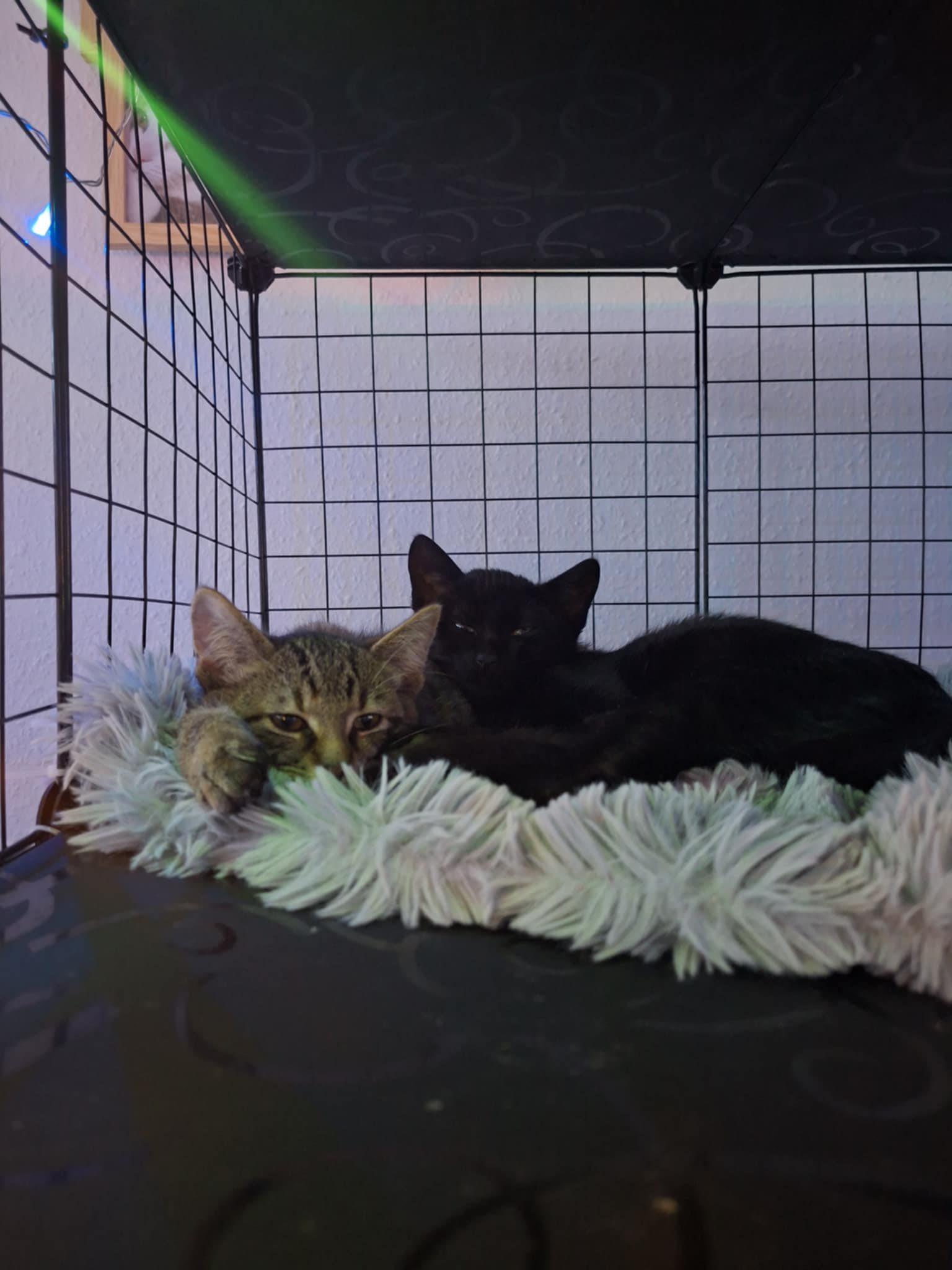 Presszó (fekete kandúr) és Mokka ( cirmos nőstény)-Szobatiszták, étvágyuk remek, és minden nap egyre bátrabbak. Budapest 10.kerületben lehet velük ismerkedni!