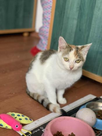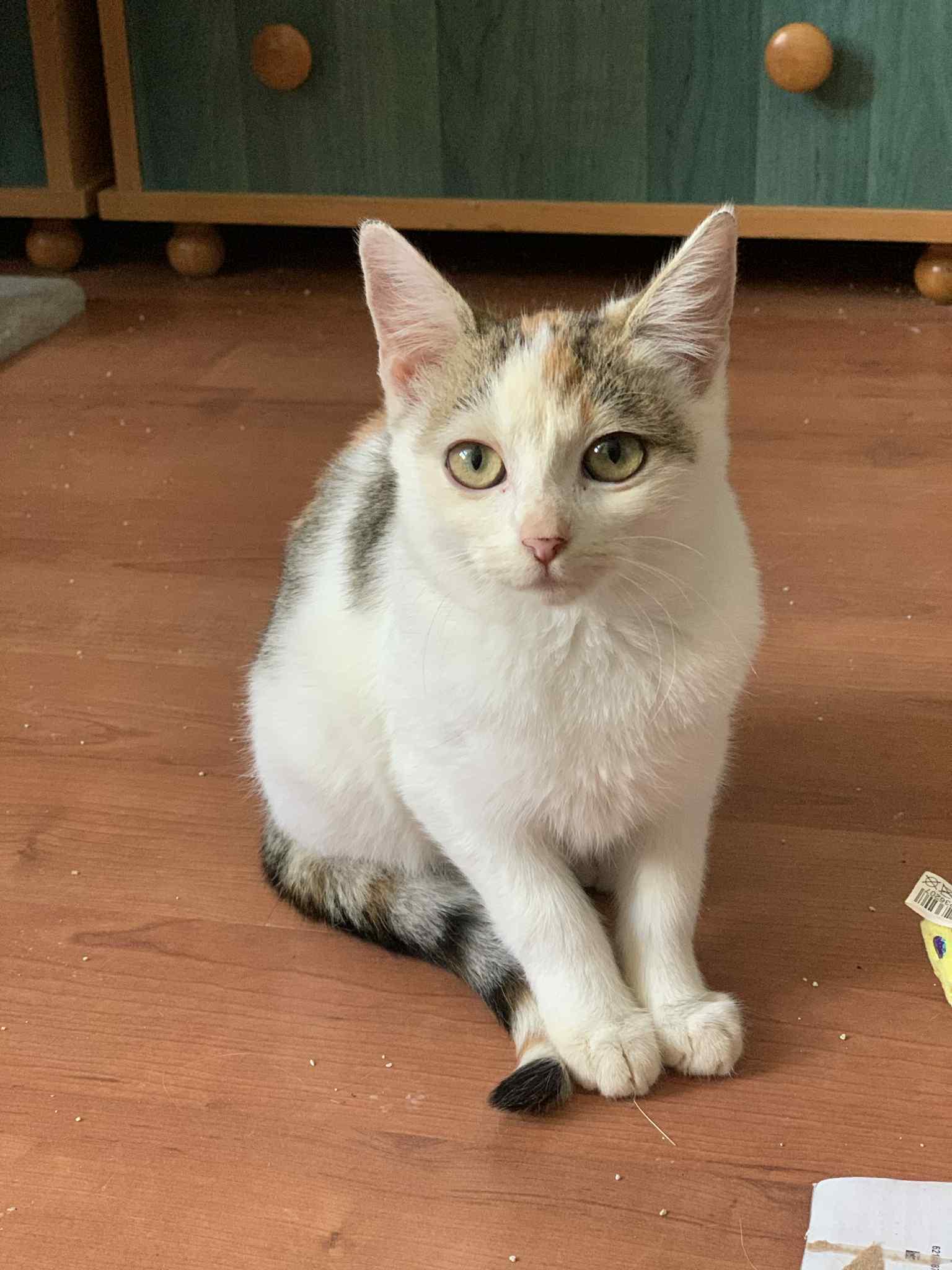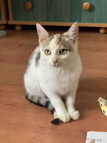 Most 3-4 hónapos vagyok, trikolor kislány, a bundámon a természet minden színe ott csillog.