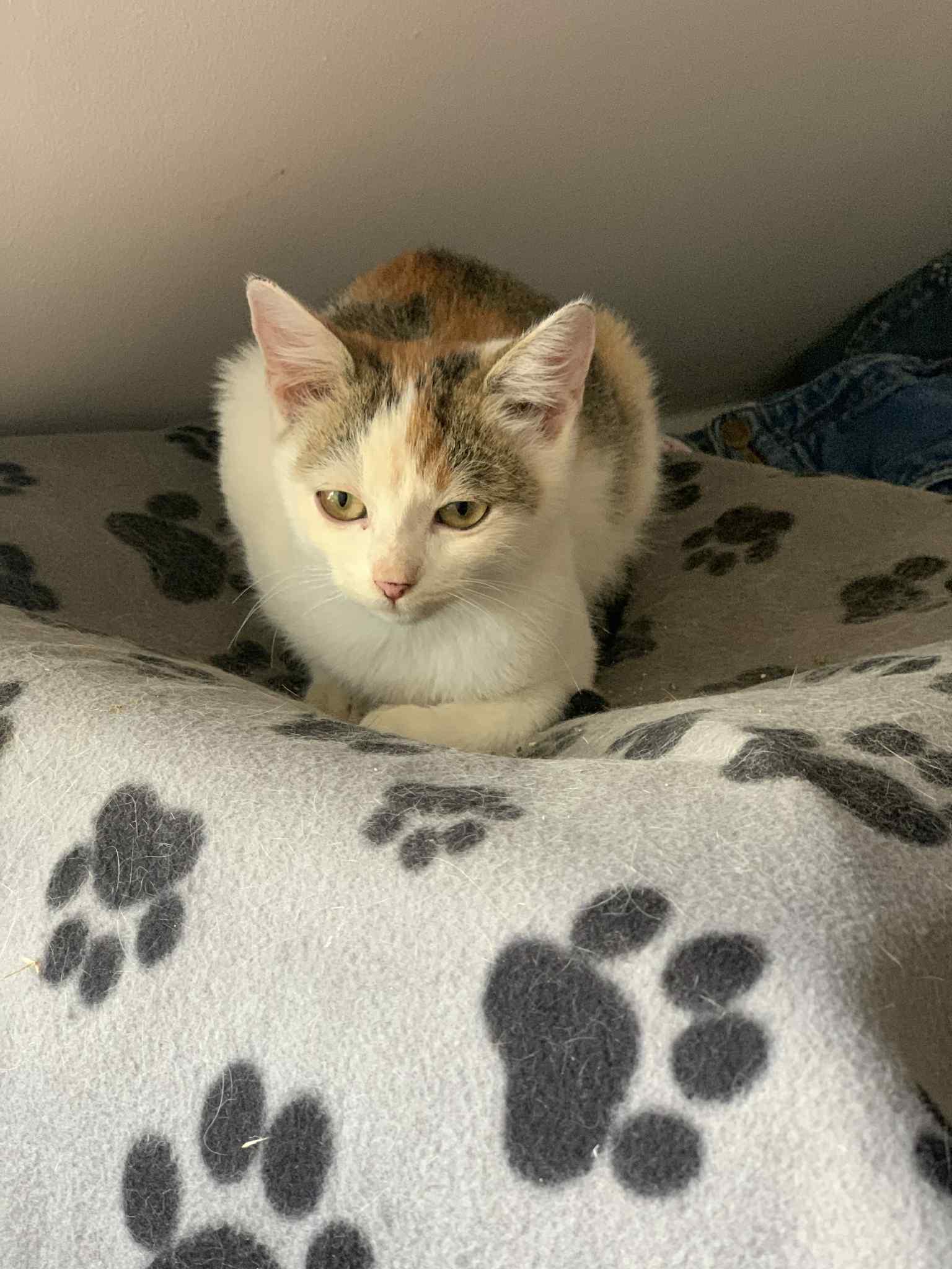 Már megkaptam az első oltásomat, chipes vagyok, és FIV/FeLV negatív – vagyis egészséges, ragyogó kis tarka csoda.
